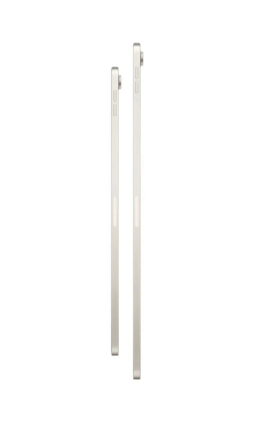 Дизайн планшета не изменился в сравнении с моделью предыдущего поколения. Корпус 13-дюймового iPad Air сделан из алюминия и радует толщиной в 6,1 мм. Кнопки управления, динамики и фронтальная камера расположены таким образом, чтобы устройством было удобно пользоваться в горизонтальной ориентации. Подобный формат идеально подходит для видеозвонков, просмотра видео и работы с клавиатурной обложкой. Несмотря на большой экран, iPad Air – лёгкий планшет. Он весит чуть больше 600 граммов, поэтому его удобно брать с собой в поездки и использовать на весу.